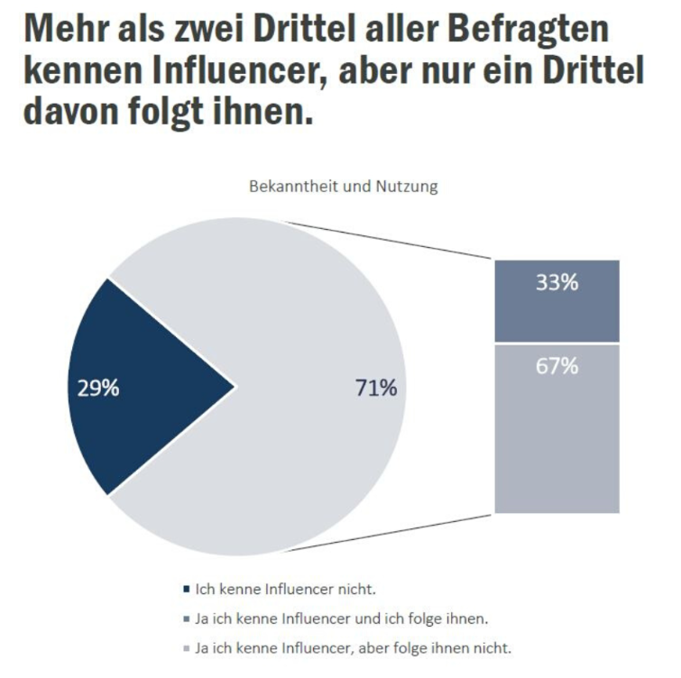 Doch laut der Studie *Influencer 2.0, sind 57% der Befragten der Meinung, dass Influencer entlang des Kanals „Social Media“ lediglich Geld verdienen wollen und das oft ganz egal mit welchen Produkten. Die Folge ist, dass laut dieser Studie 71% der Nutzer und potenziellen Käufer zahlreiche Influencer zwar kennen, diesen jedoch vor dem Hintergrund der fehlenden Glaubwürdigkeit und der fehlenden Authentizität zunehmend nicht oder nicht mehr folgen. Vor allem die Zusammenarbeit mit Marken, wird in der Studie stark hinterfragt.
